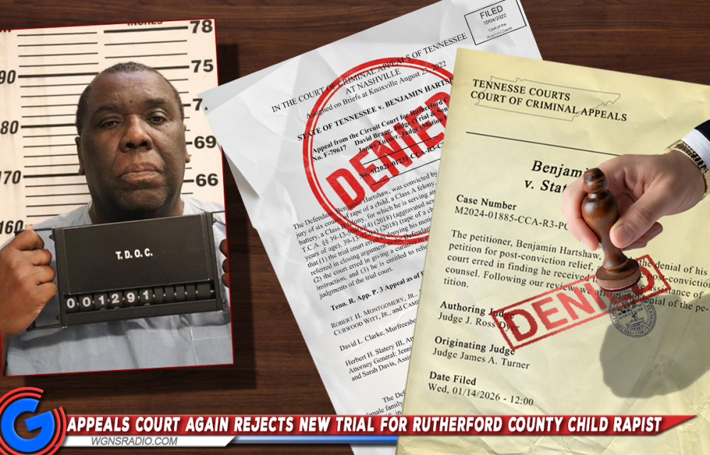 Another appeal followed in later years and carried into 2025 before rolling into the new year. That effort also failed. In the most recent action, Hartshaw appealed a prior denial of post-conviction relief, arguing the post-conviction court erred in finding that he received effective assistance of counsel. According to court records stamped this past Wednesday, January 14, 2026, the Court of Criminal Appeals again affirmed the denial, meaning Hartshaw will not receive a new trial and will remain incarcerated.