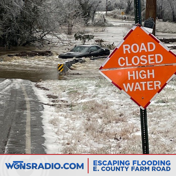 MURFREESBORO, Tenn. (WGNS) - A harrowing scene ended in a narrow escape Sunday afternoon after a vehicle was swept into rushing floodwaters on East County Farm Road.