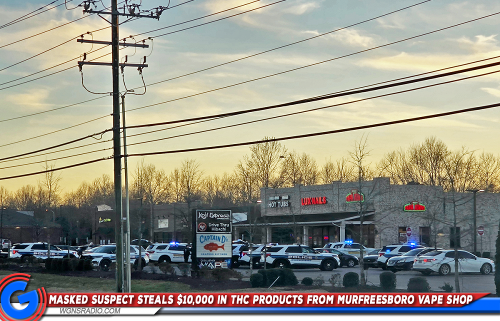 MURFREESBORO, Tenn. (WGNS) — Detectives with the Murfreesboro Police Department are searching for a man accused of stealing approximately $10,000 worth of THC products from a South Church Street vape shop over the weekend. The vape shop sits between Koji Express and Captain D's Seafood on South Church Street in Murfreesboro.