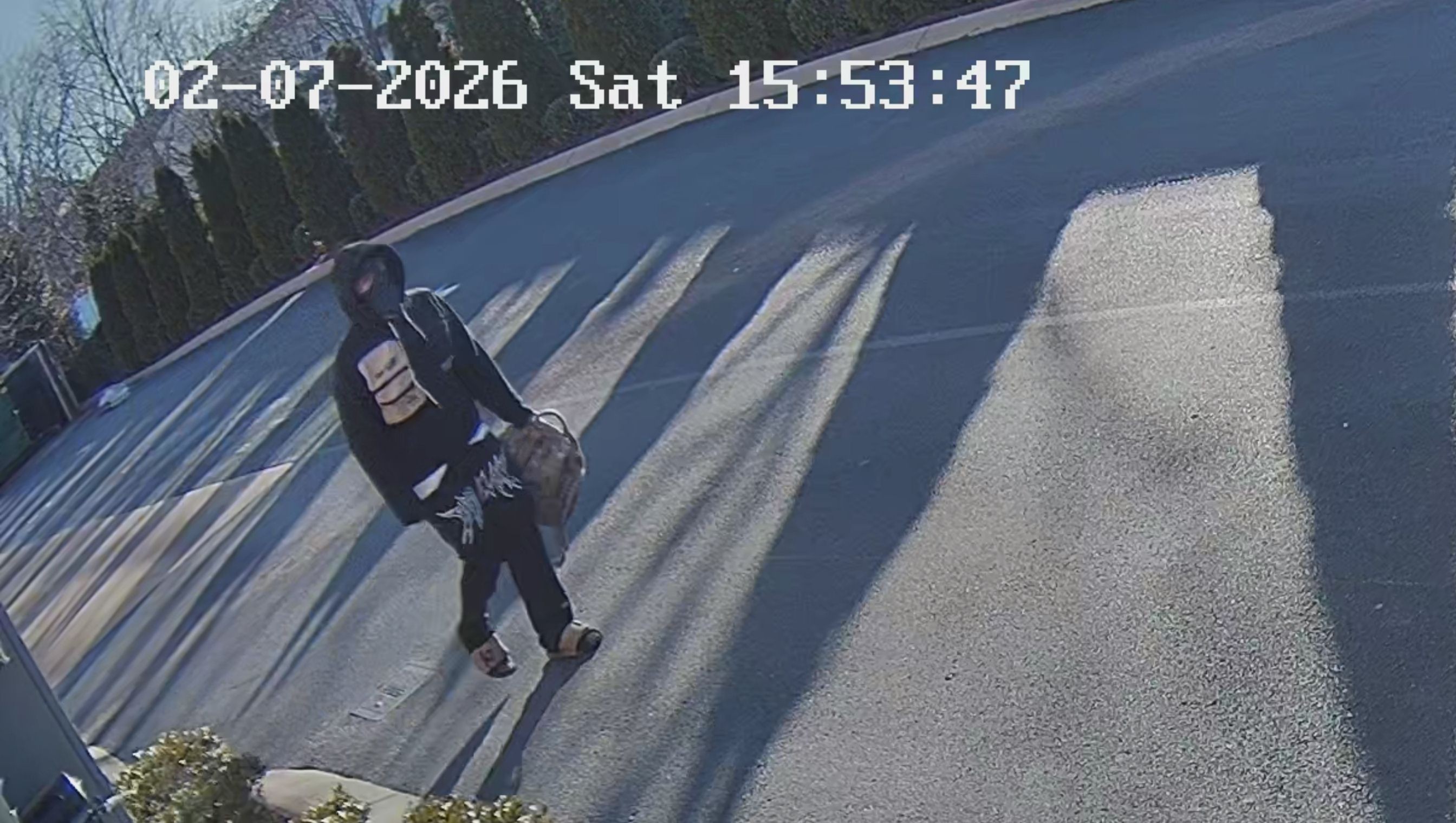 According to police, the suspect was wearing a ski mask, black hoodie, black sweatpants, and slippers at the time of the theft.