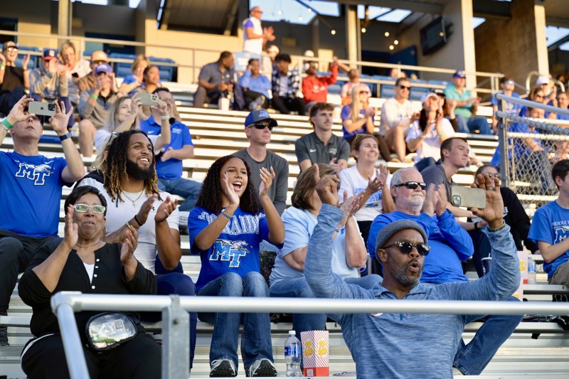 Blue Raider fans cheer on their team during the Middle Tennessee State University Conference USA game against visiting Florida International University on Saturday, Nov. 8, in Floyd Stadium in Murfreesboro, Tenn. (MTSU photo by Cat Curtis Murphy)