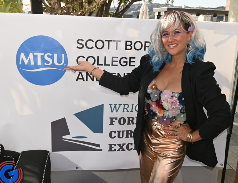 An attendee at MTSU’s annual pre-Grammy celebration over the weekend, held at The Godfrey Hotel in Hollywood. (MTSU photo)