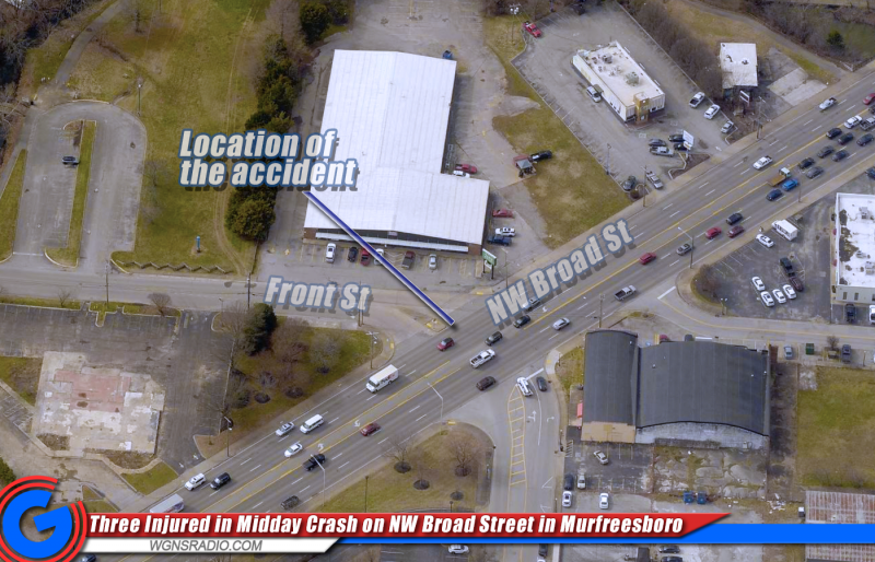 MURFREESBORO, Tenn. – A two-vehicle accident in Murfreesboro on Wednesday around noon resulted in three people being injured.